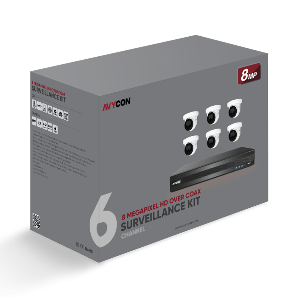 AVYCON - AVK-TE81E6-3T - 8MP TVI Kit with 6 of 8MP TVI Turret Cameras and 8CH DVR with 3TB HDD pre-installed, contains AVC-TE81F28 (6 QTY) and AVR-DSV808H-3T (1 QTY)