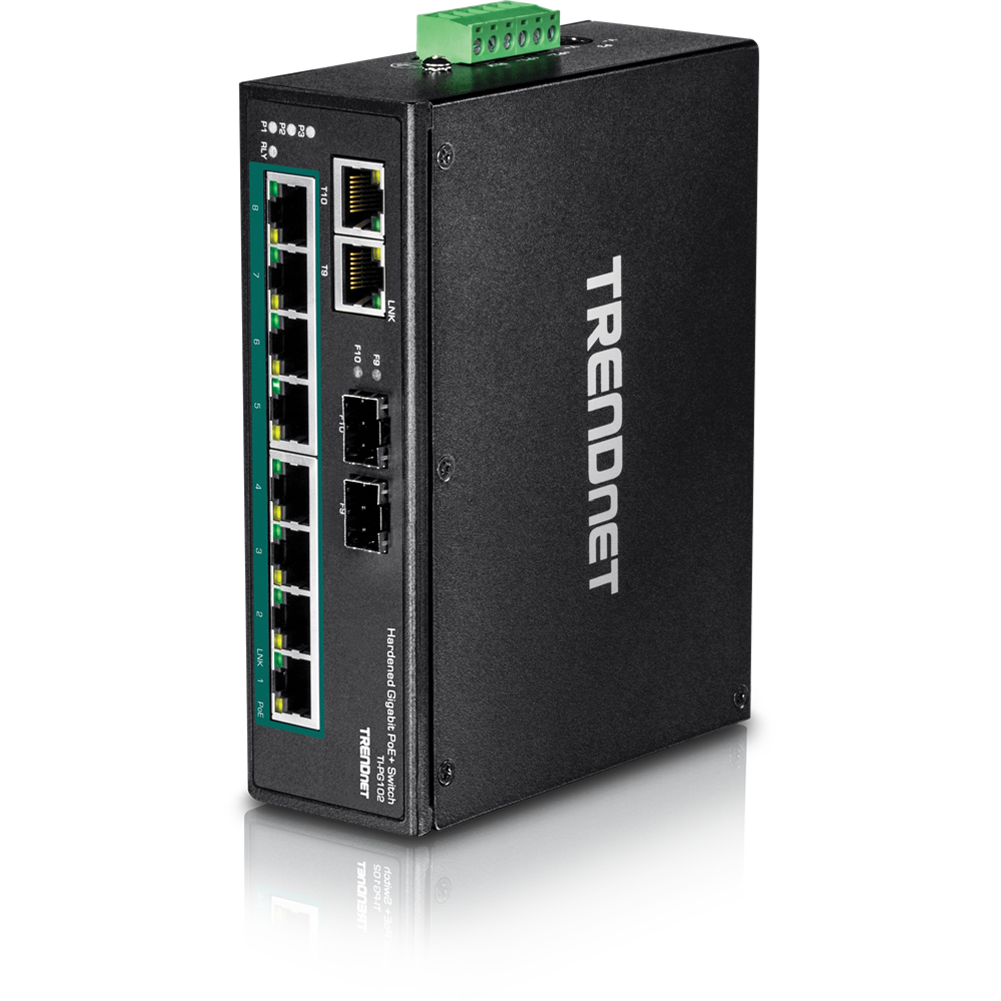 TRENDNET - TI-PG102 - 10-Port Hardened Industrial Gigabit PoE+ DIN-Rail Switch