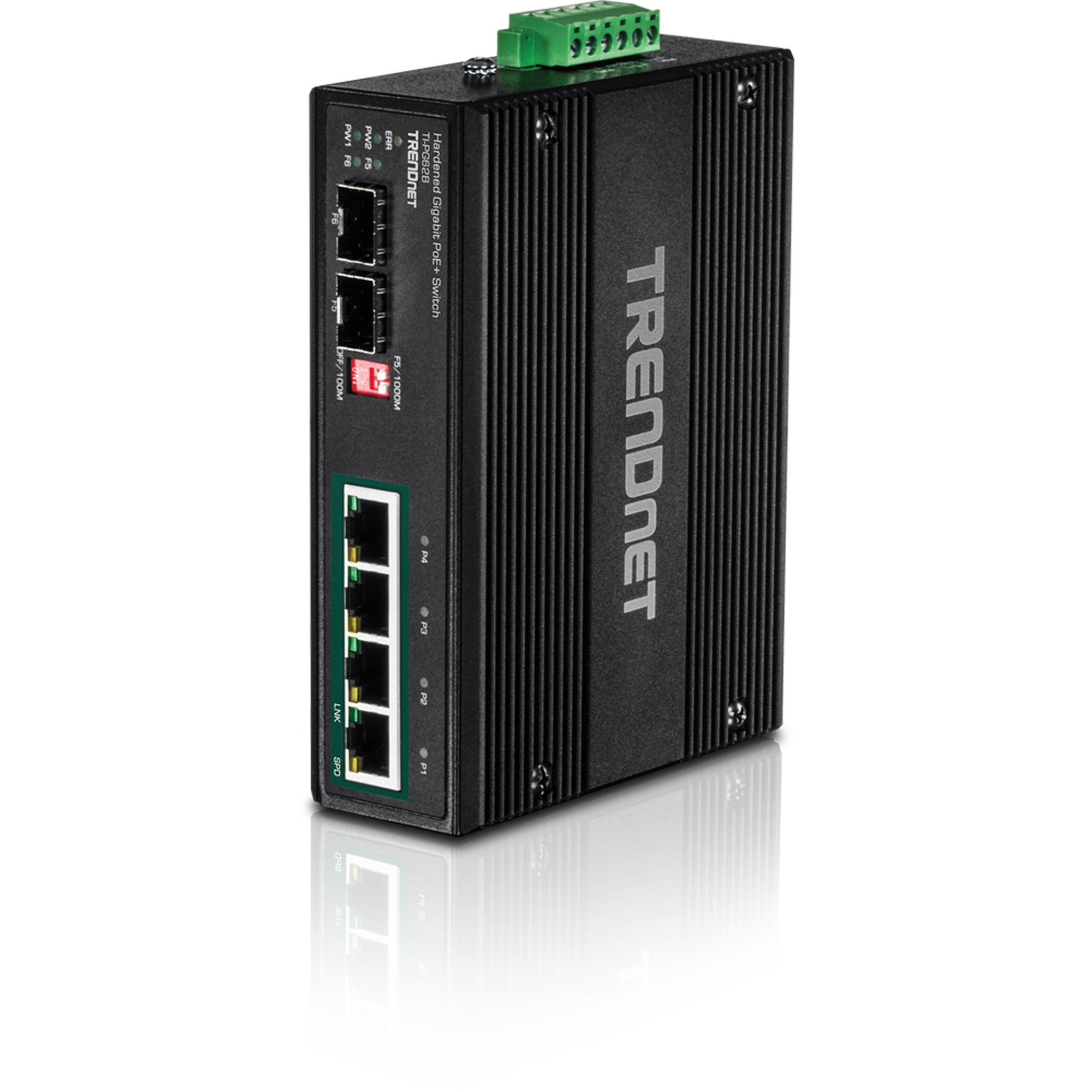 TRENDNET - TI-PG62B - 6-port hardened Industrial Gigabit PoE+ Switch /w 2 SFP (Boost Voltage from 12/24/48/VDC to 55VDC)