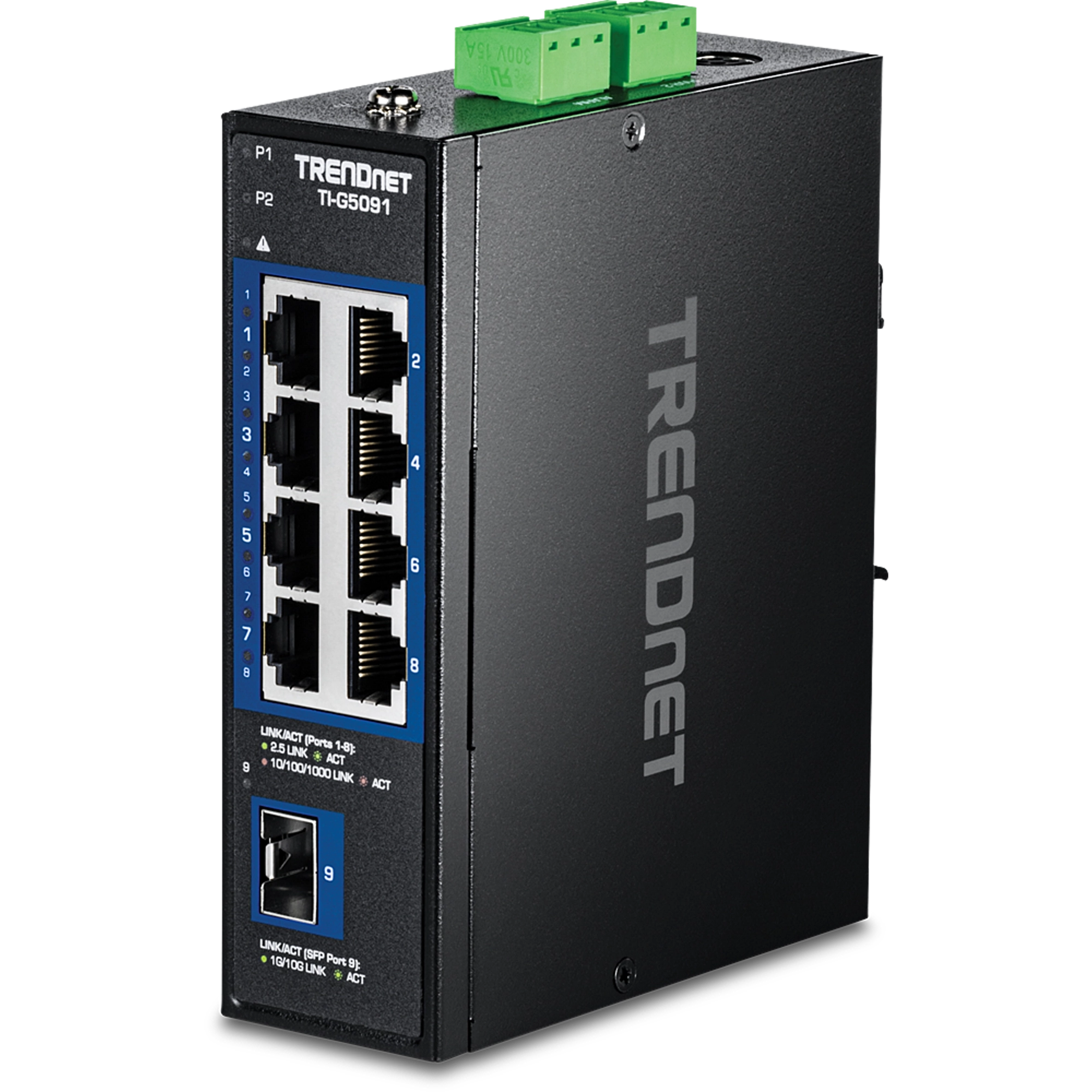 TRENDNET - TI-G5091 - 9-Port Industrial 2.5G DIN-Rail Switch with 10G SFP+ Port