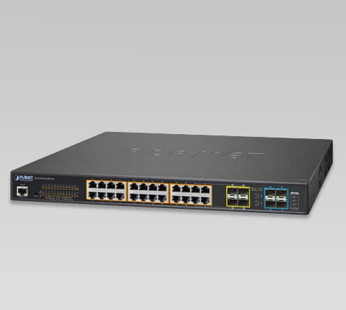 The GS-5220-24UPL4X is a cost-optimized, 1U, Gigabit Ultra PoE Managed Switch featuring PLANET’s intelligent PoE functions to improve the availability of critical business applications.