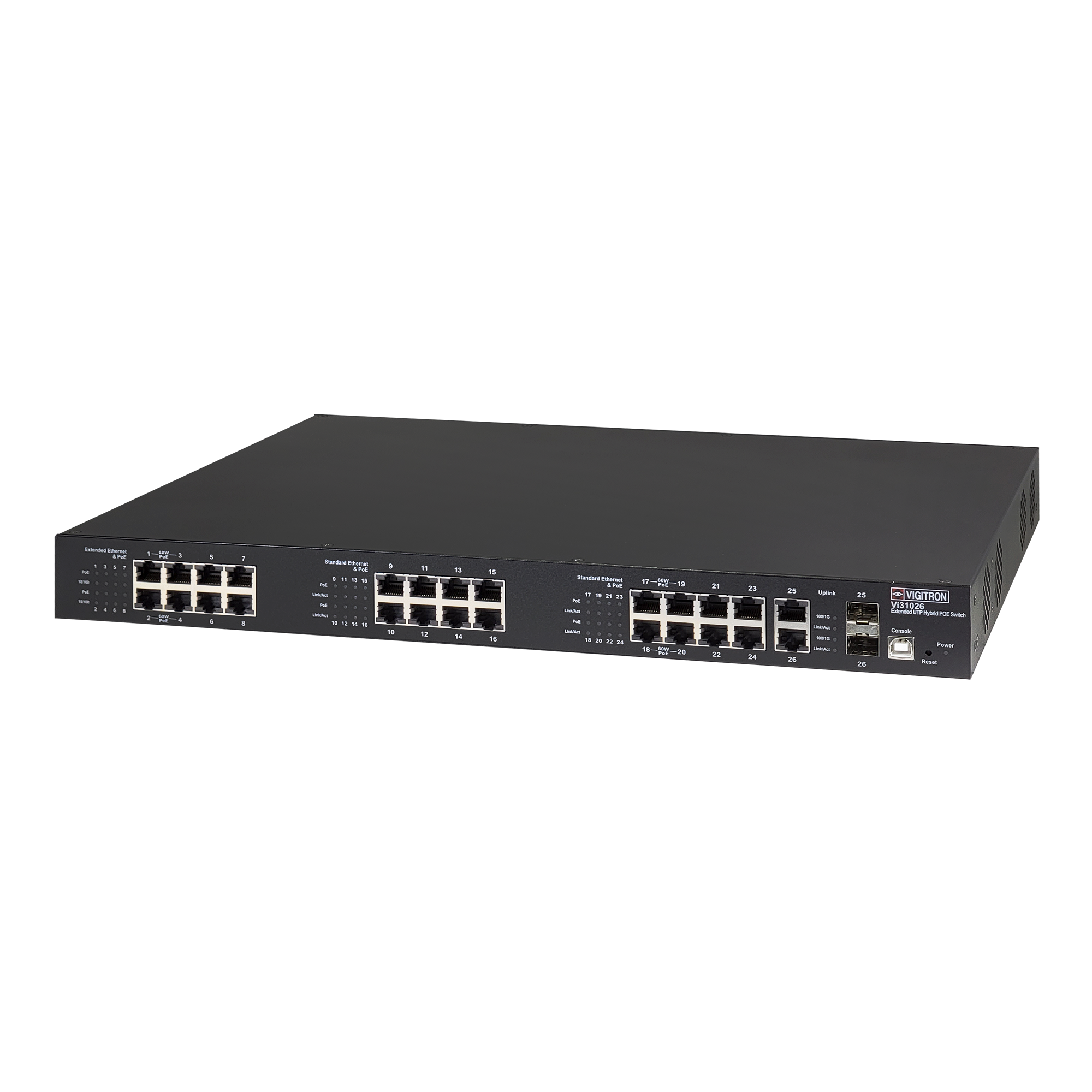- Vigitron - Vi31026 - 26-Port, 8-Port Extended UTP, 16-Port Standard, L2, Hybrid PoE Switch Vigitron - Vi31026 - 26-Port, 8-Port Extended UTP, 16-Port Standard, L2, Hybrid PoE Switch