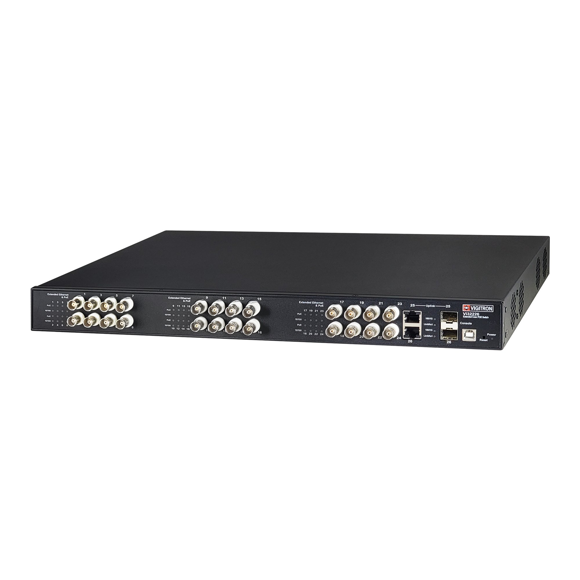 Vigitron’s Vi32226 is the next generation L2 managed switch designed for PoE+ and high bandwidth network applications, providing a reliable infrastructure for your business network. Eight extended Coax ports provide solutions that require both extended distance and standard distance applications in one convenient cost effective space saving package. The Vi32226 can provide solutions for applications up to distances of 2,000 feet (609m) providing central control maximum bandwidth utilization increasing system performance and reliability.